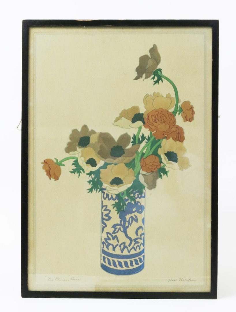 John Hall Thorpe (1874-1947) The Chinese Vase a print of anemones in a blue and white cylindrical...