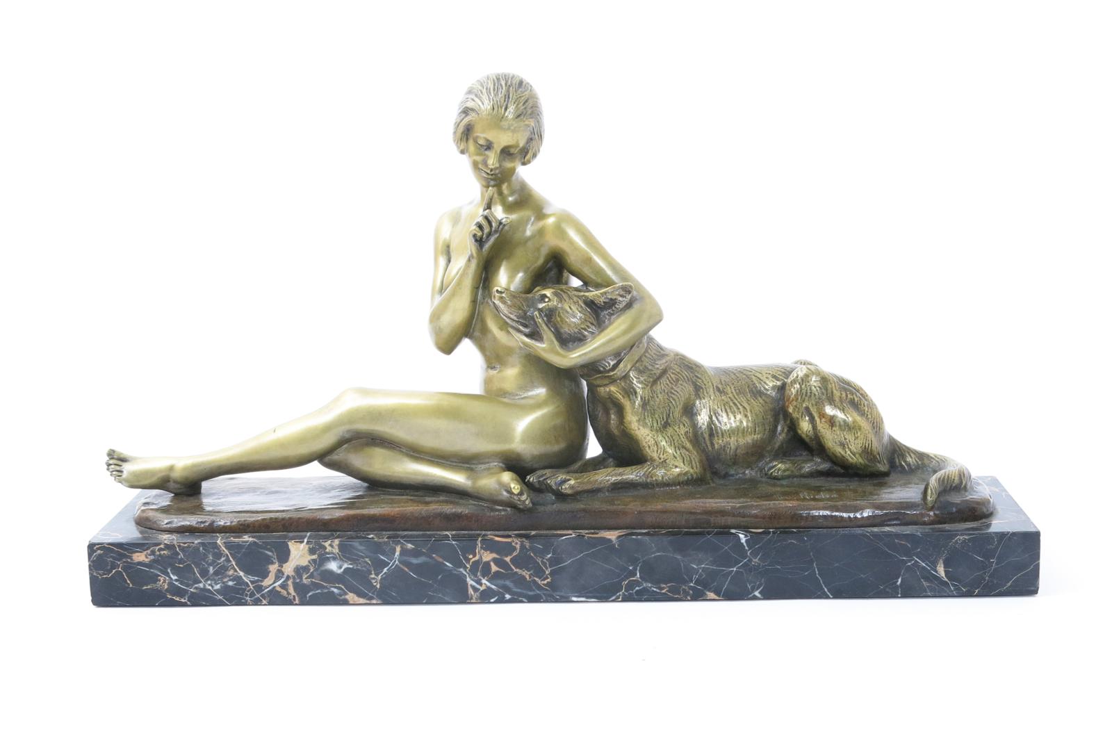 'Maiden resting with a Dog' a gilt bronze sculpture cast from a model by Louis Riche (1877-1949)