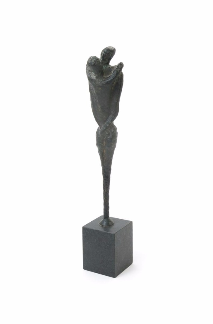 Lovers a patinated bronze sculpture, on a black marble base unsigned 47cm. high