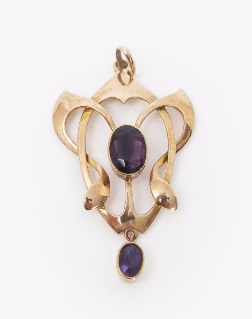 An Art Nouveau Barnet Henry Joseph gold and amethyst set pendant