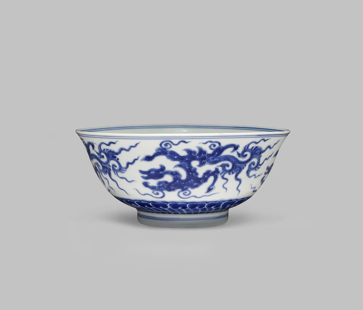 A RARE CHINESE IMPERIAL BLUE AND WHITE 'KUI DRAGON' BOWL