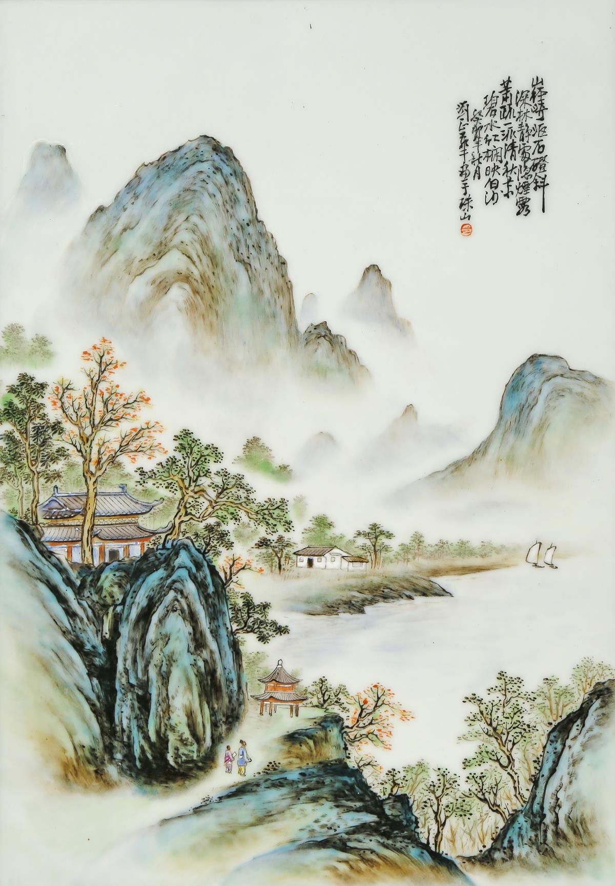 A SET OF FOUR CHINESE PORCELAIN PLAQUES 20TH CENTURY Each painted with a mountainous landscape