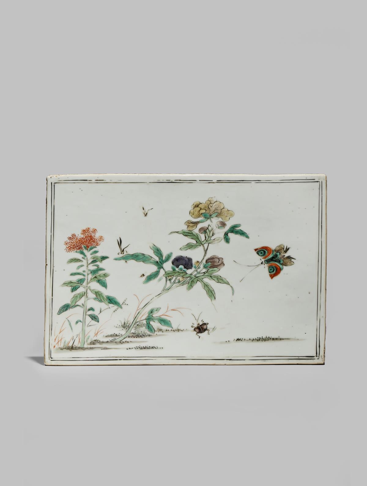 A CHINESE FAMILLE VERTE RECTANGULAR PLAQUE KANGXI 1662-1722 Loosely painted with a butterfly