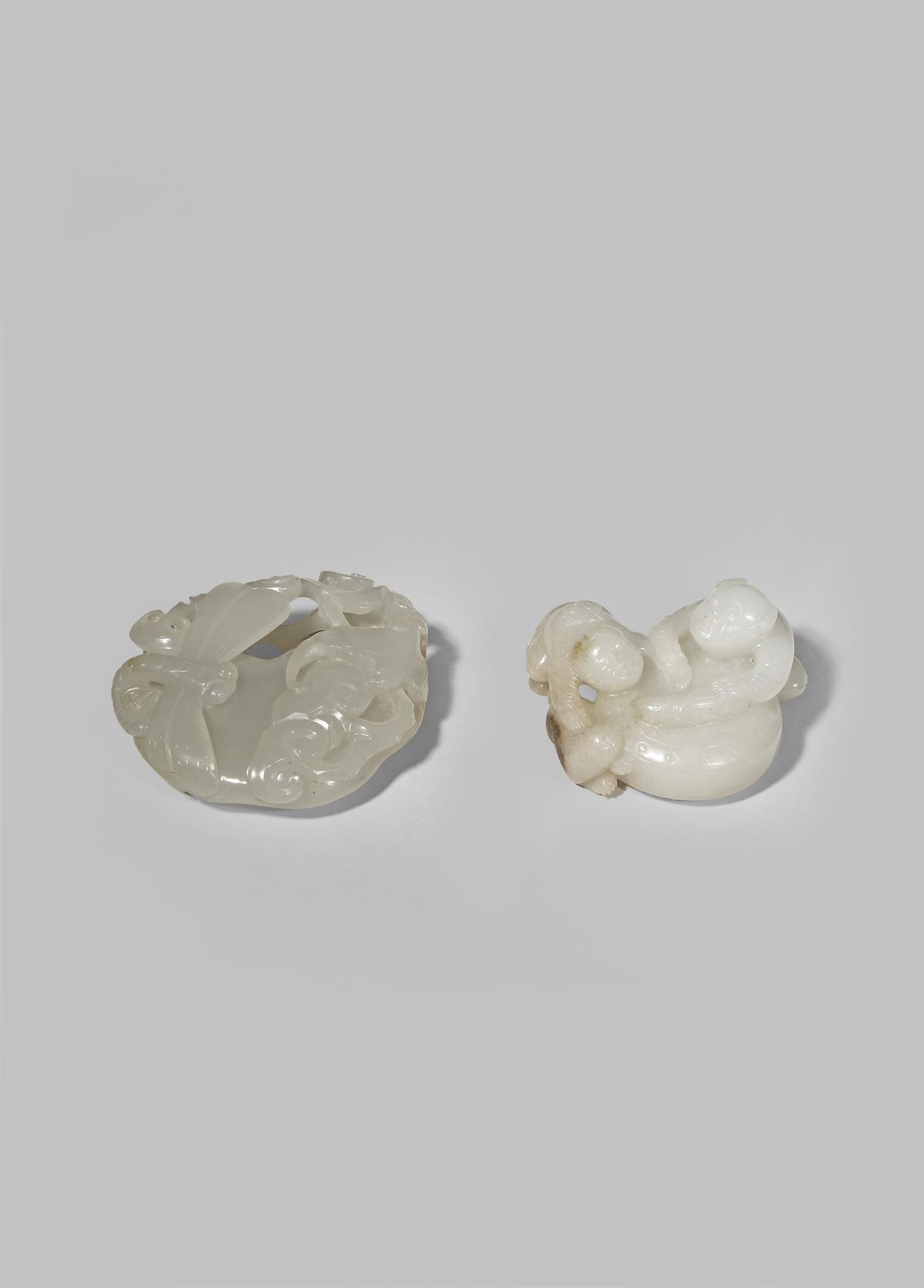 TWO CHINESE PALE CELADON JADE CARVINGS
