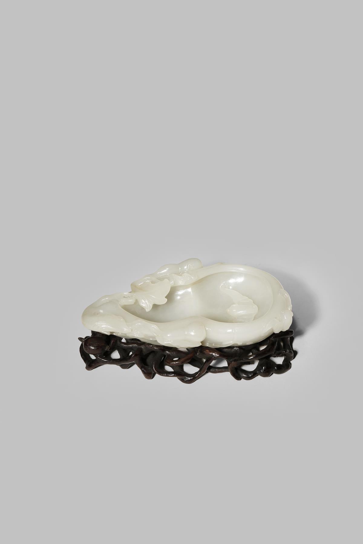 A CHINESE WHITE JADE BRUSH WASHER QING DYNASTY OR LATER Shaped as a large gourd issuing from a...