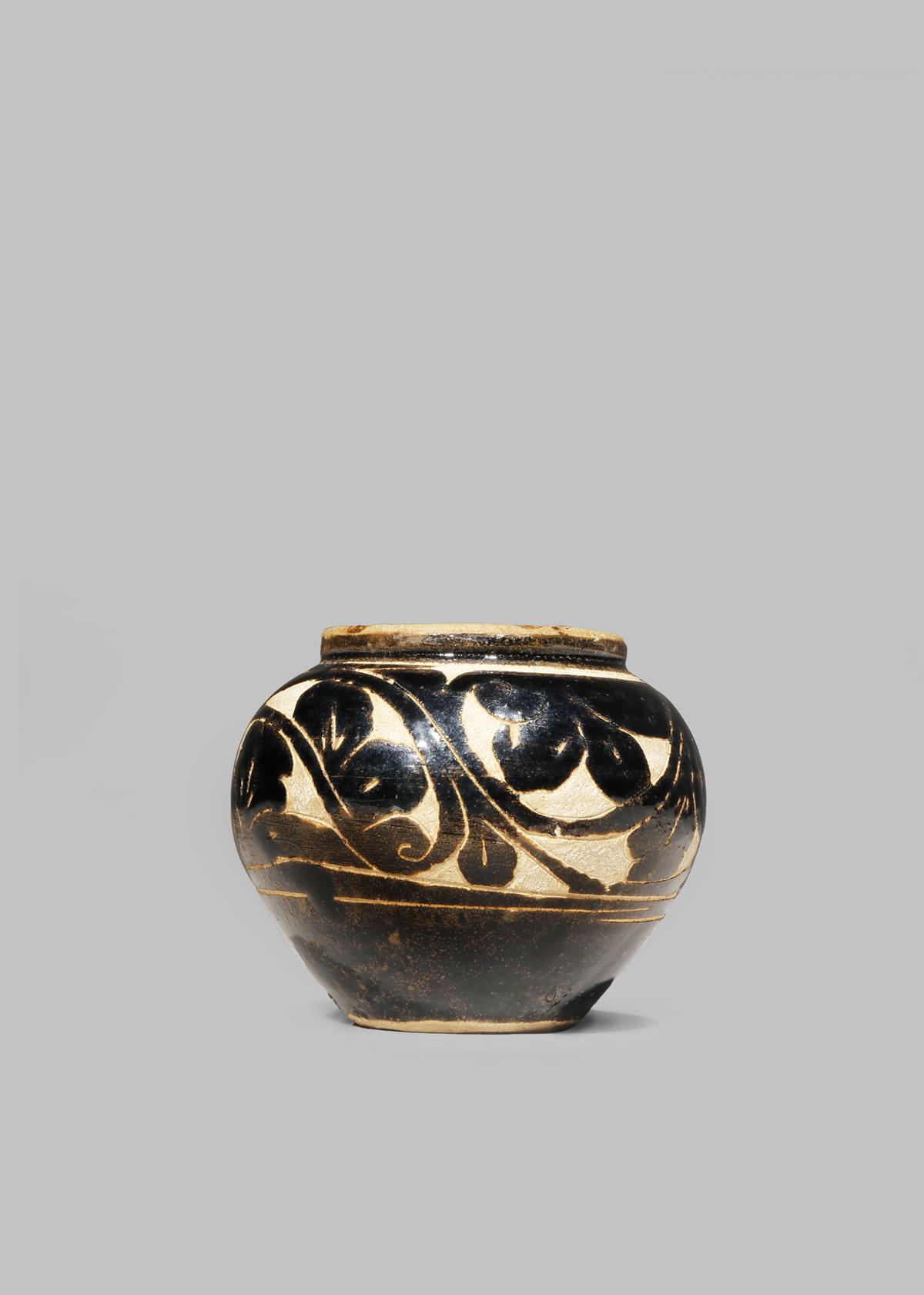 A SMALL CHINESE CIZHOU VASE SONG DYNASTY 960-1279 AD The deep brown-glazed body decorated with a...