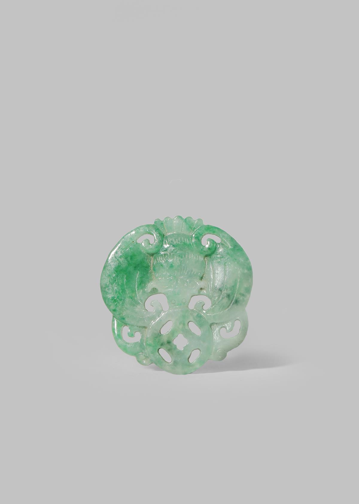 A CHINESE JADEITE RETICULATED PLAQUE QING DYNASTY Carved with a bat