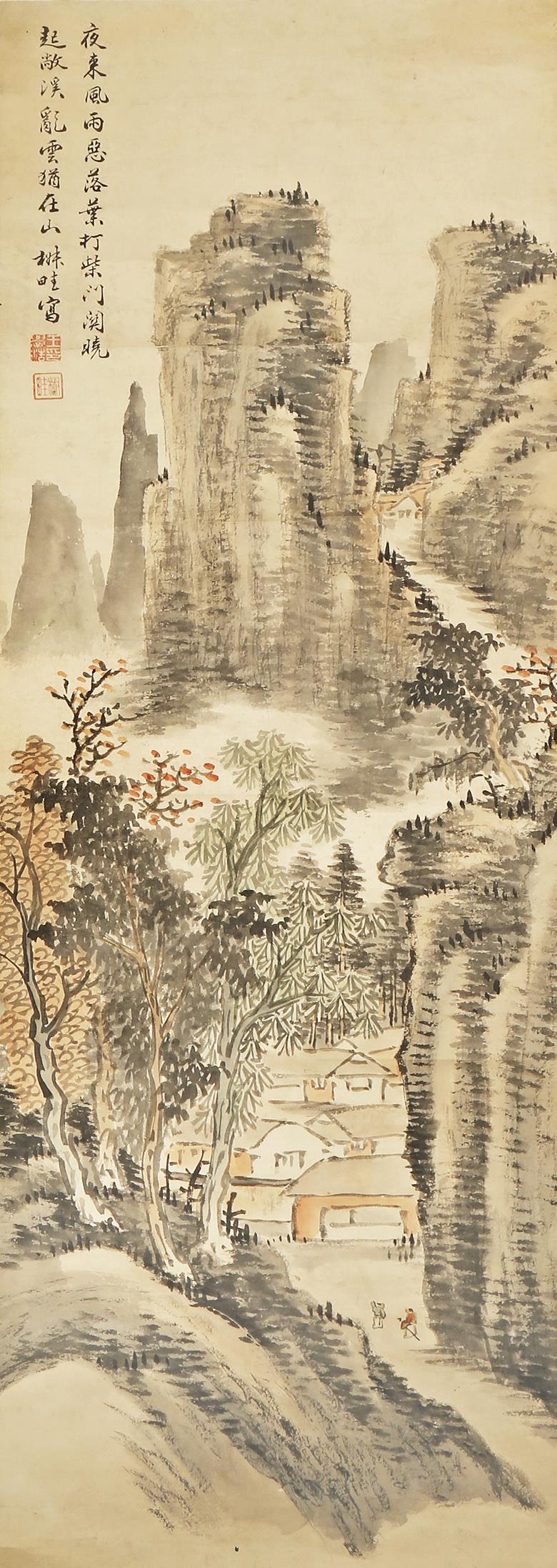 FOUR SCROLL PAINTINGS 19TH/20TH CENTURY Two painted with landscapes