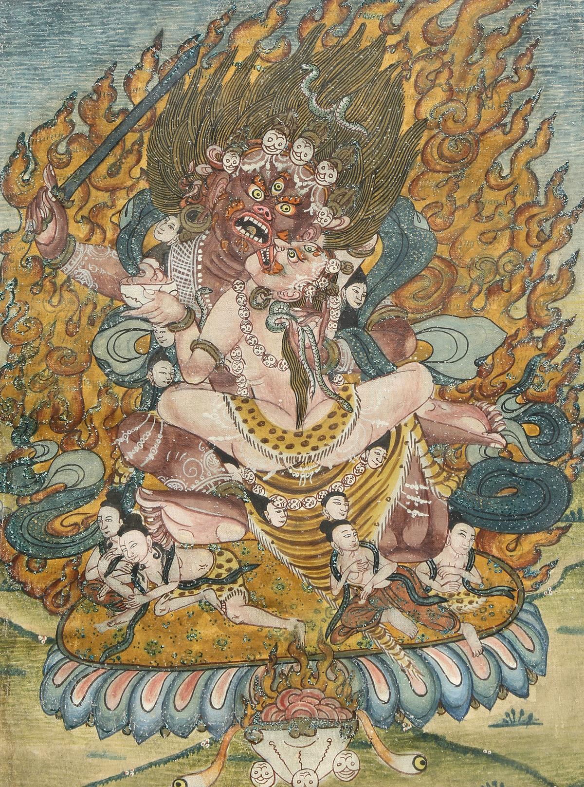 THREE NEPALESE THANGKAS 19TH/20TH CENTURY Painted on canvas with Buddhist deities