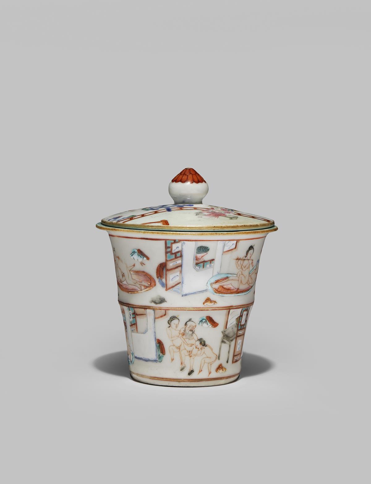 *A CHINESE FAMILLE ROSE EROTIC SUBJECT CUP AND COVER