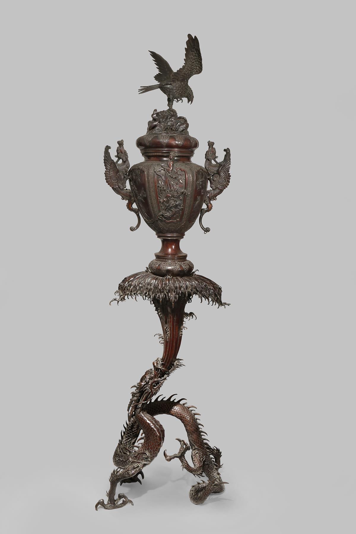 Cf. O Impey and M Fairley, Metalwork, vol.2 of Meiji no takara, Treasures of Imperial Japan: The Nasser D. Khalili Collection of Japanese Art no.108 for a similar bronze dragon base.