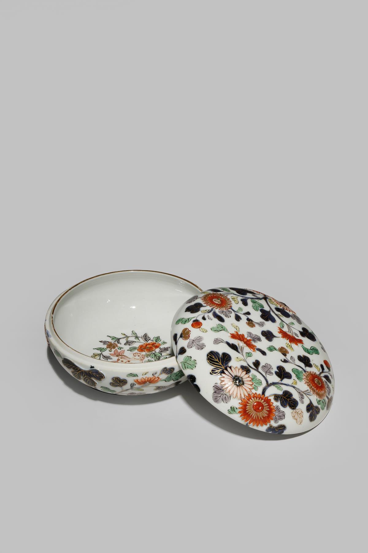 A JAPANESE ARITA BOX AND COVER 18TH CENTURY The domed cover moulded in shallow relief with...