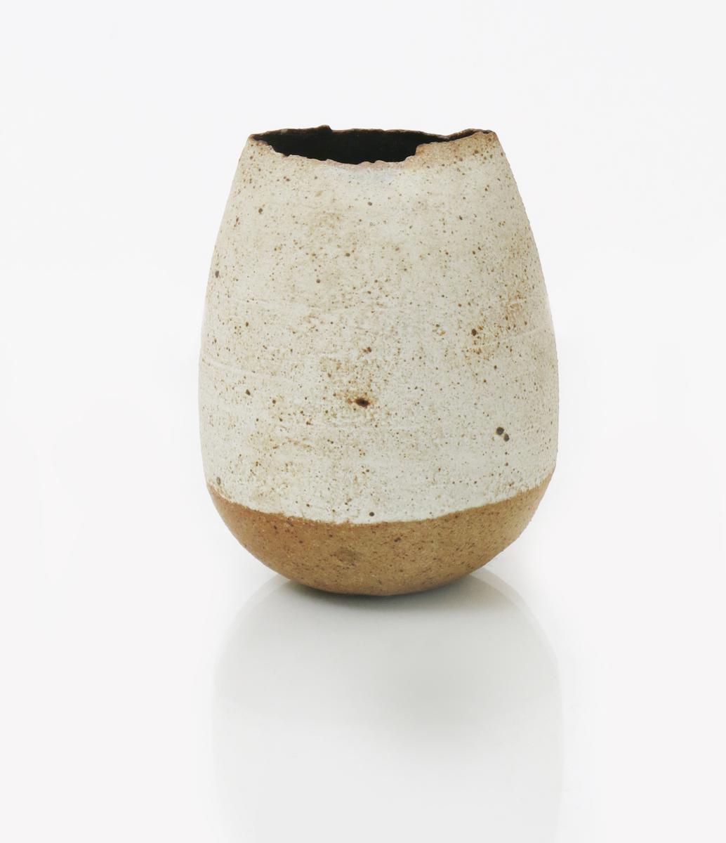 a stoneware vase, sack form with uneven rim, the exterior glazed to the foot with a matt buff speckled glaze, and a collection of studio pottery including Michael Casson, Yo Thom, Clive Bowen and Natasha Daintry impressed seal mark, 11cm. high (a lot)
