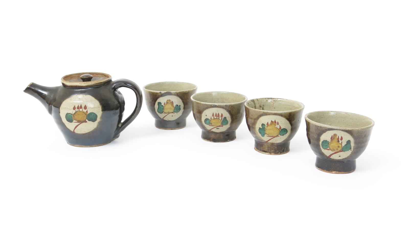 Tatsuzo Shimaoka (1919-2007) a stoneware teapot and four unomi