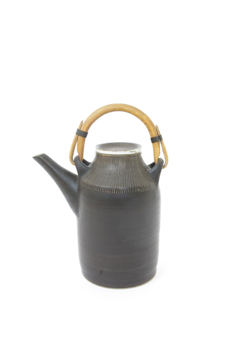 Dame Lucie Rie Sale of a Lifetime Bonhams, 17th April 1997, page 59 lot 97 for a comparable Coffee pot covered in a black gloss glaze.