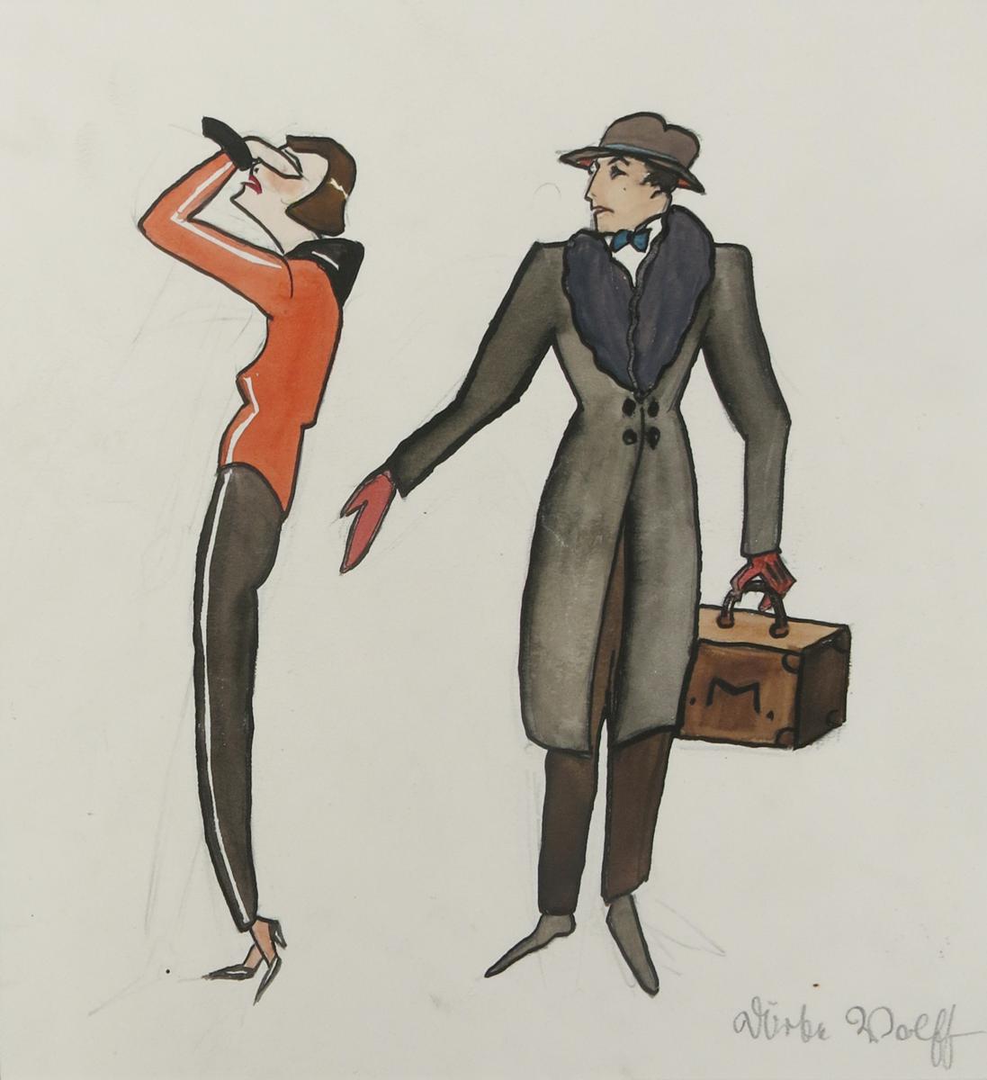 ‡Dorte Clara Dodo Burgner (1907-1998) Bad News pen and ink and watercolour on paper