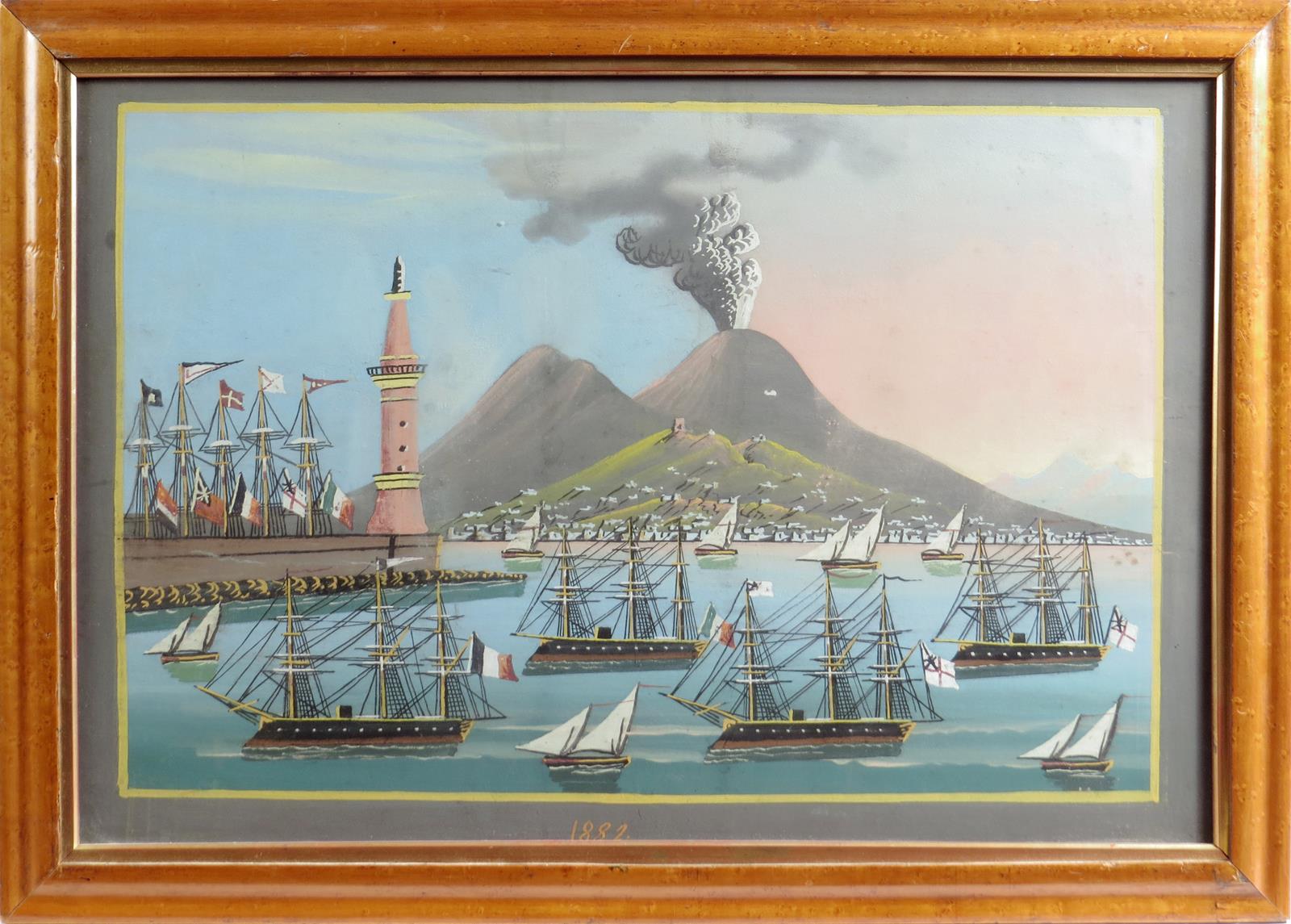 Neapolitan School (late 19th century) Vesuvius smoking and erupting A pair