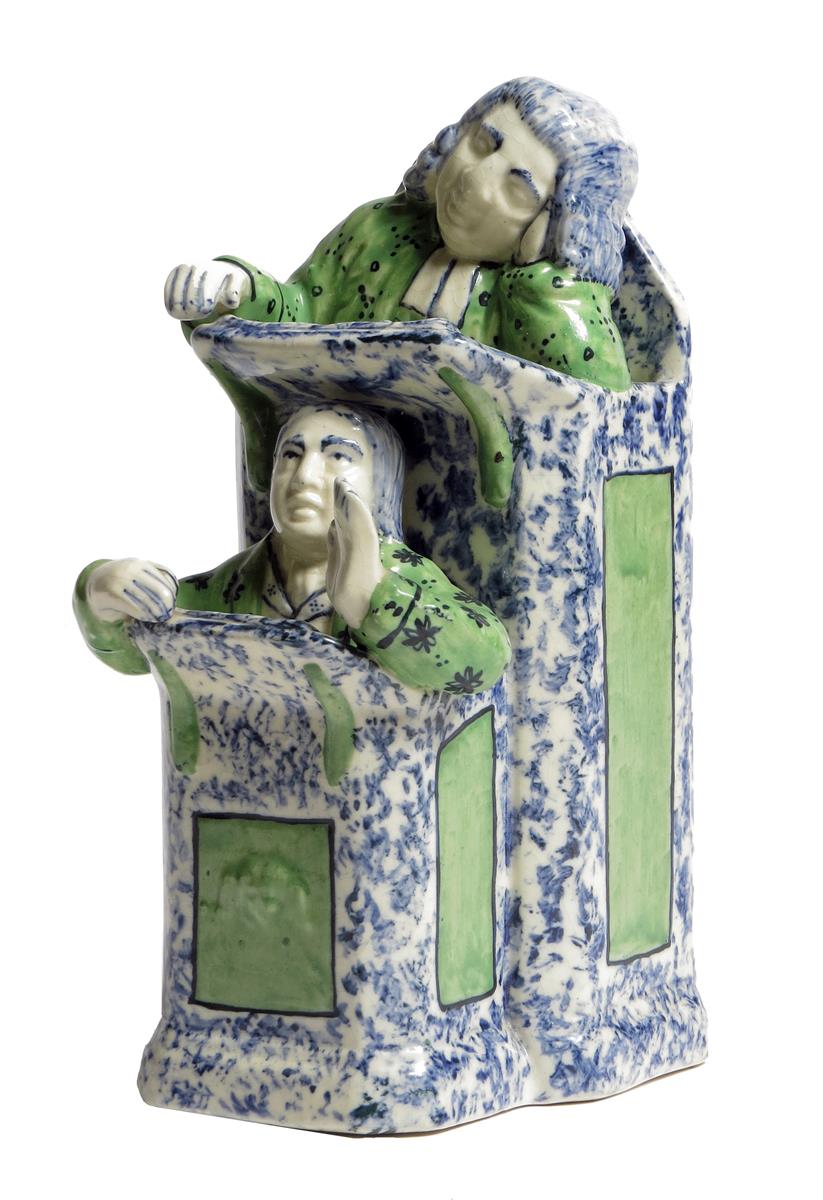 A Ralph Wood style pottery pulpit group of the 'Vicar and Moses'