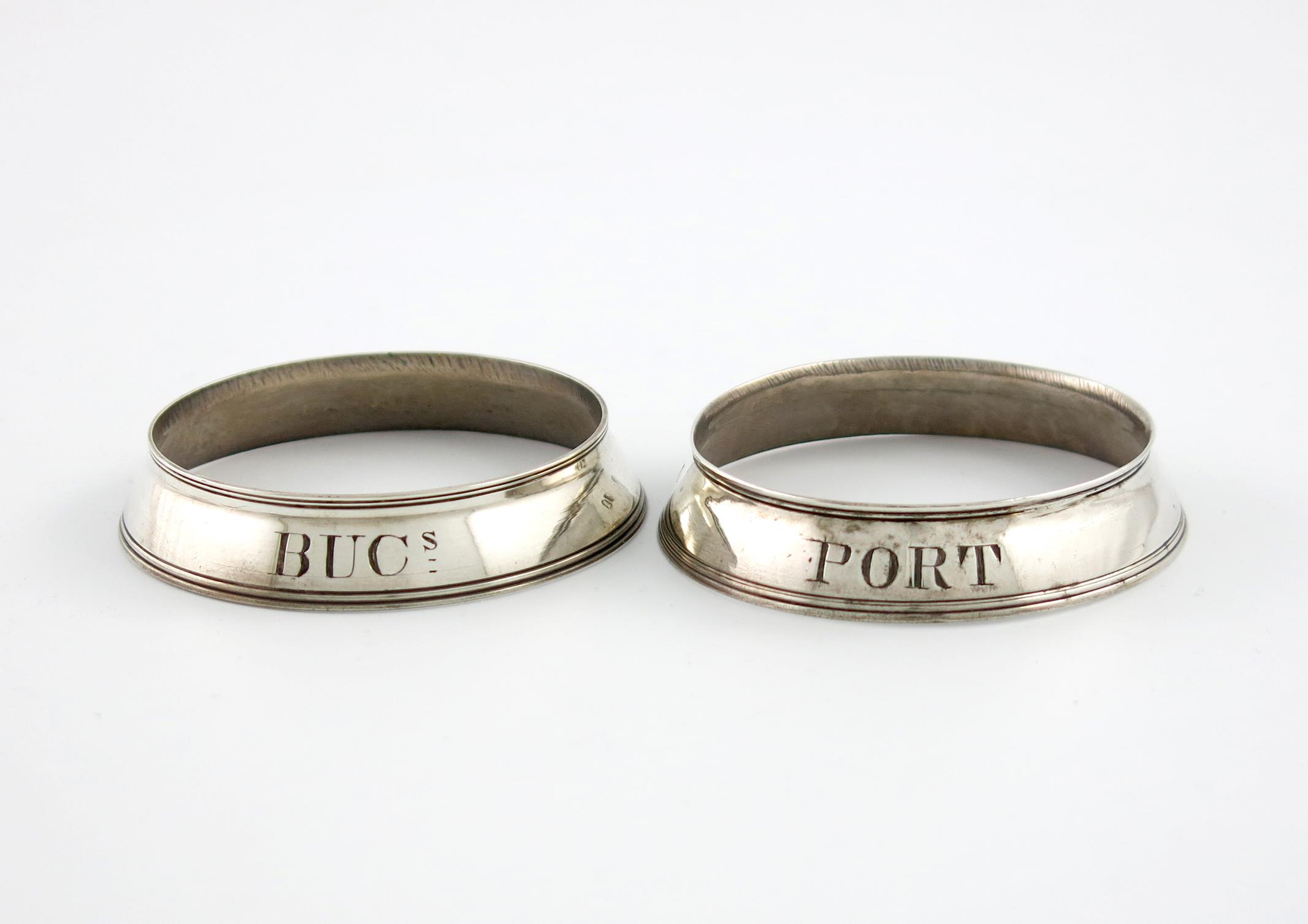 tapering form, incised three times 'BUCS' and 'PORT', approx. weight 1.3oz. (2)
