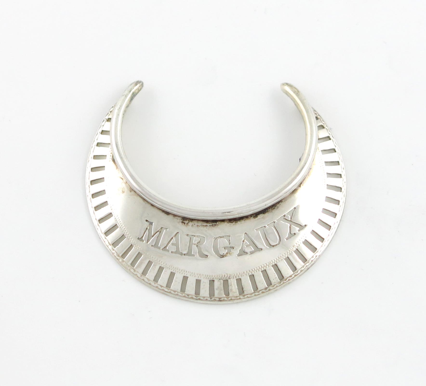 crescent form, pierced with slats, pierced 'MARGAUX', length 5.5cm, approx. weight 0.4oz.
