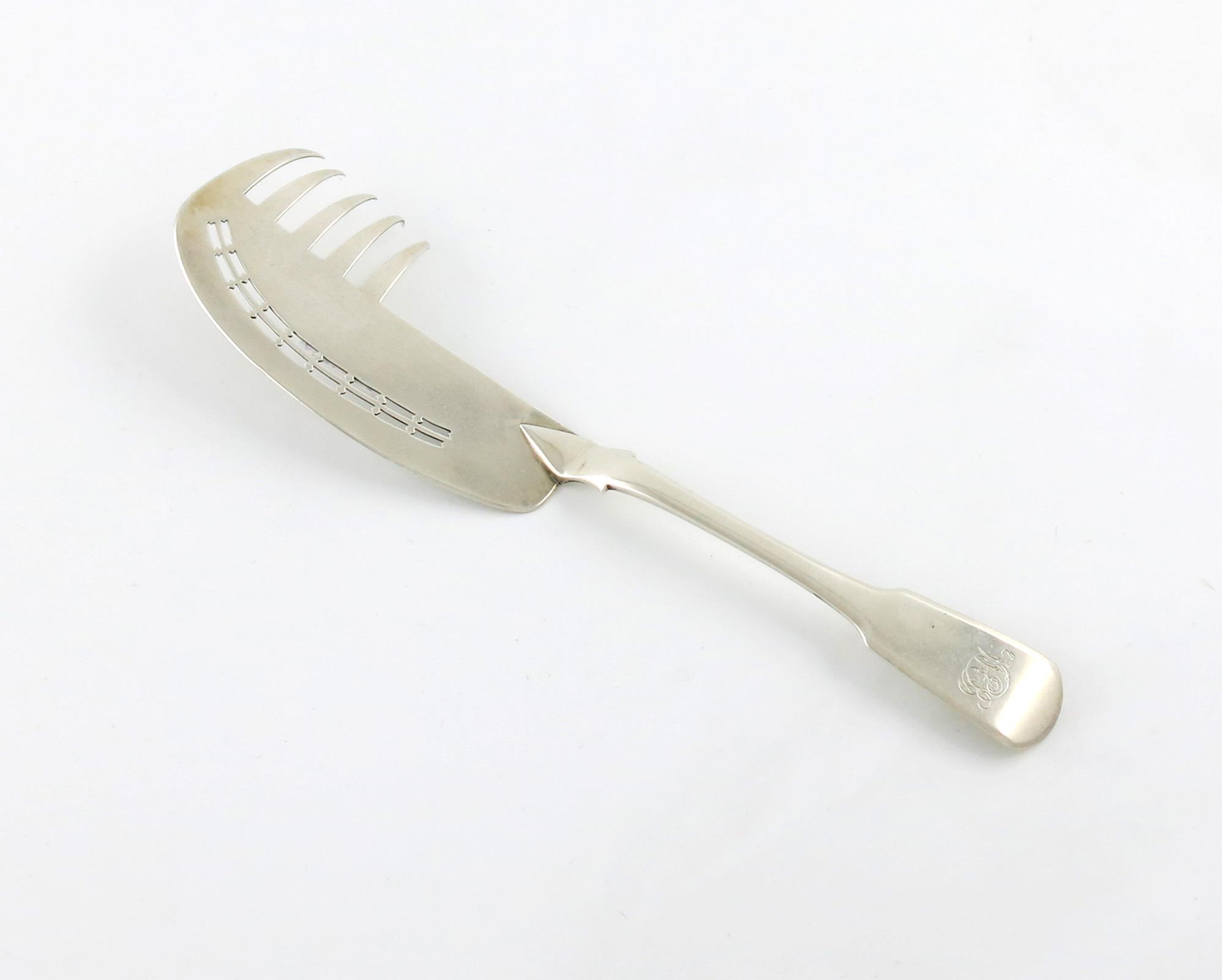 An unusual George IV silver Fiddle pattern fish slice / serving fork