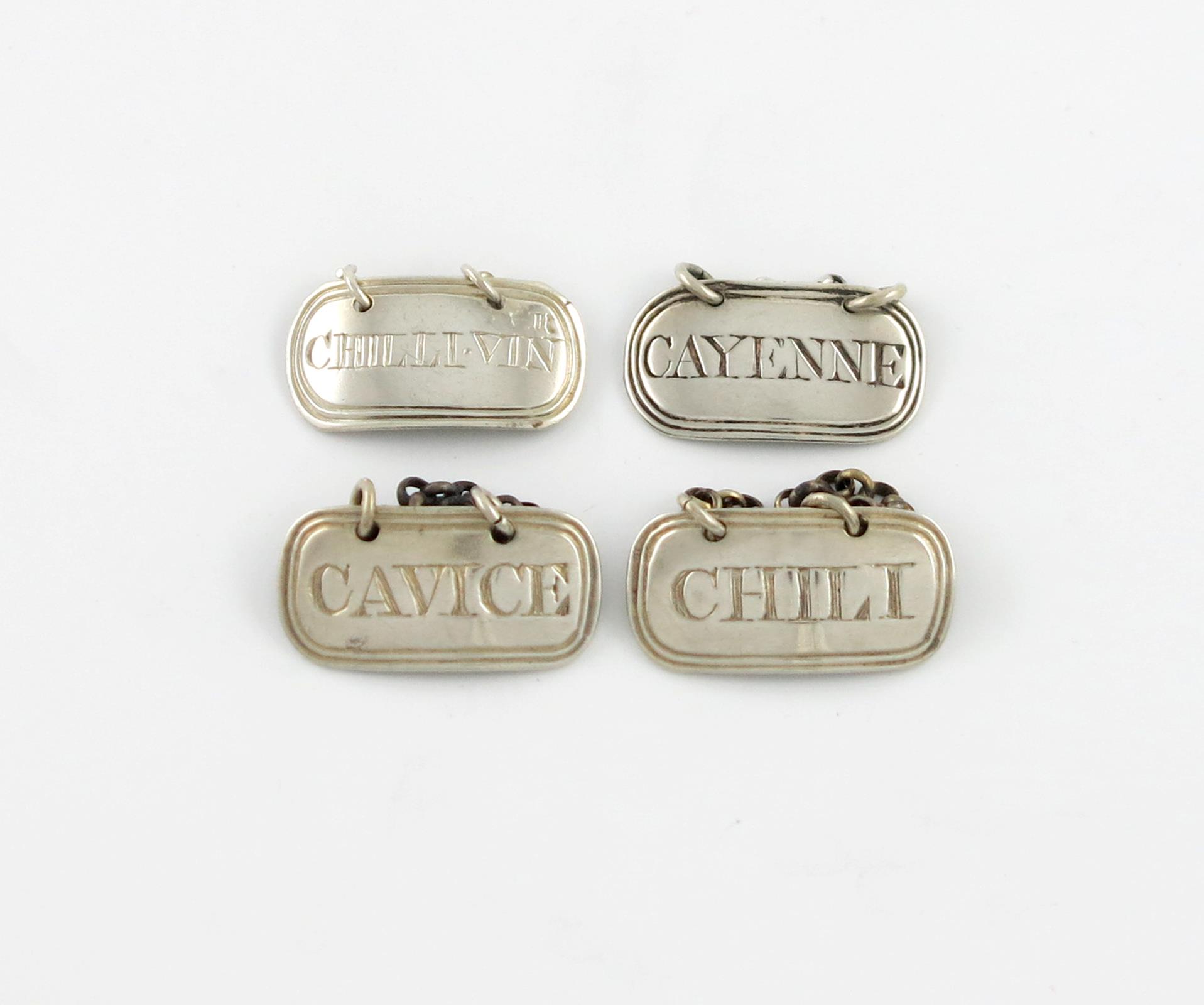 comprising: a pair by Rawlings and Summers, incised 'CAVICE', and 'CHILI', plus 'CAYENNE' and 'CHILI-VIN', approx. weight 0.4oz. (4)
