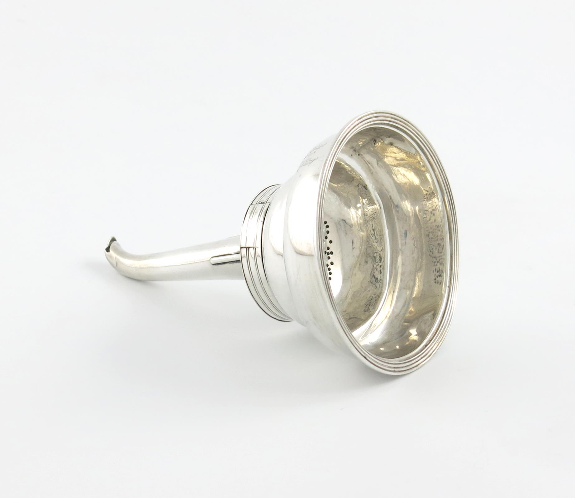 plain circular form, reeded border, side clip, height 14.2cm, approx. weight 3.4oz.
