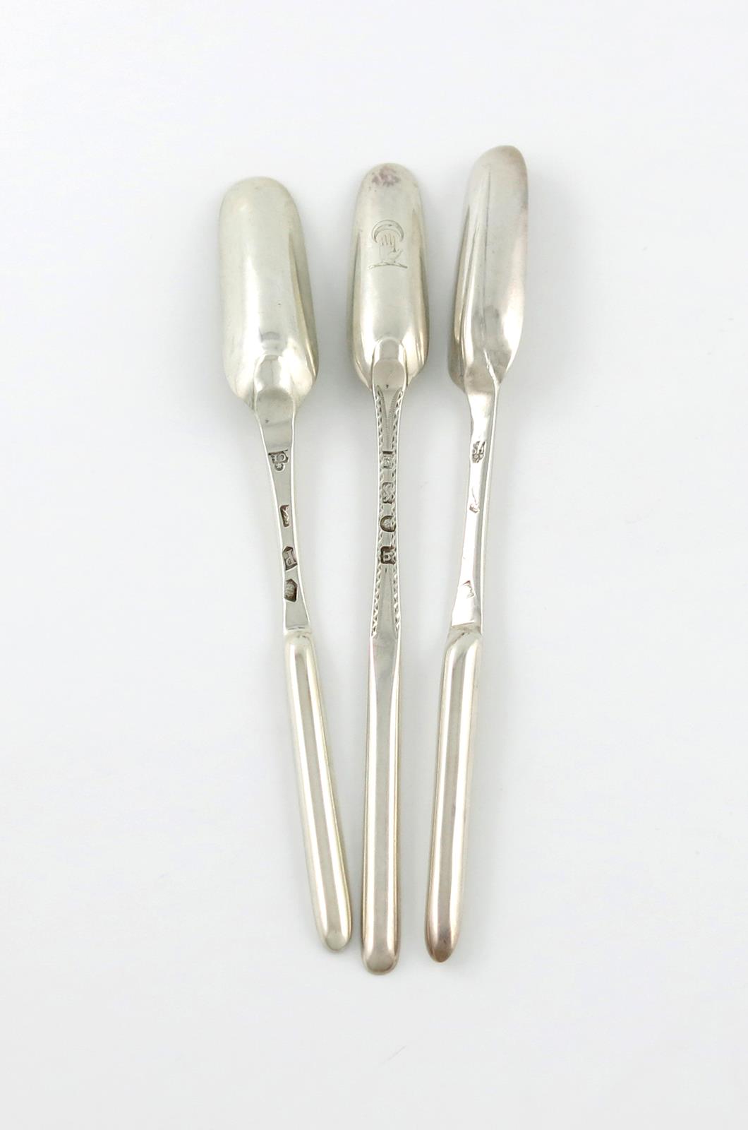 A collection of three 18th century silver marrow scoops