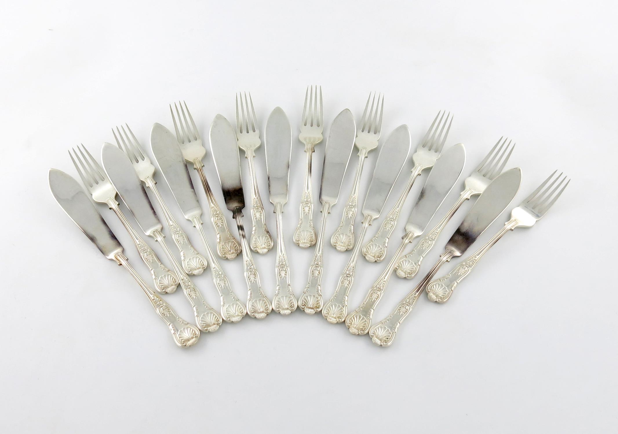 A set of nine modern silver Kings pattern fish knives and forks