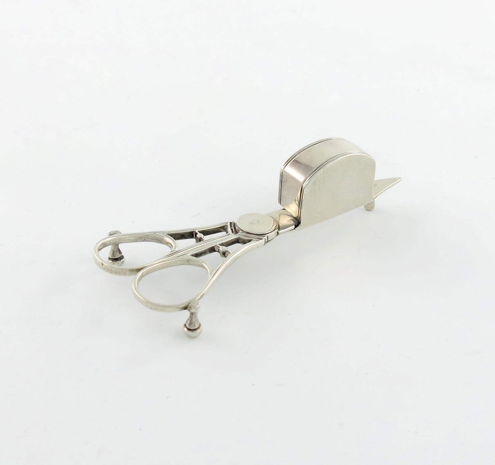 A pair of George III small silver scissor snuffers,