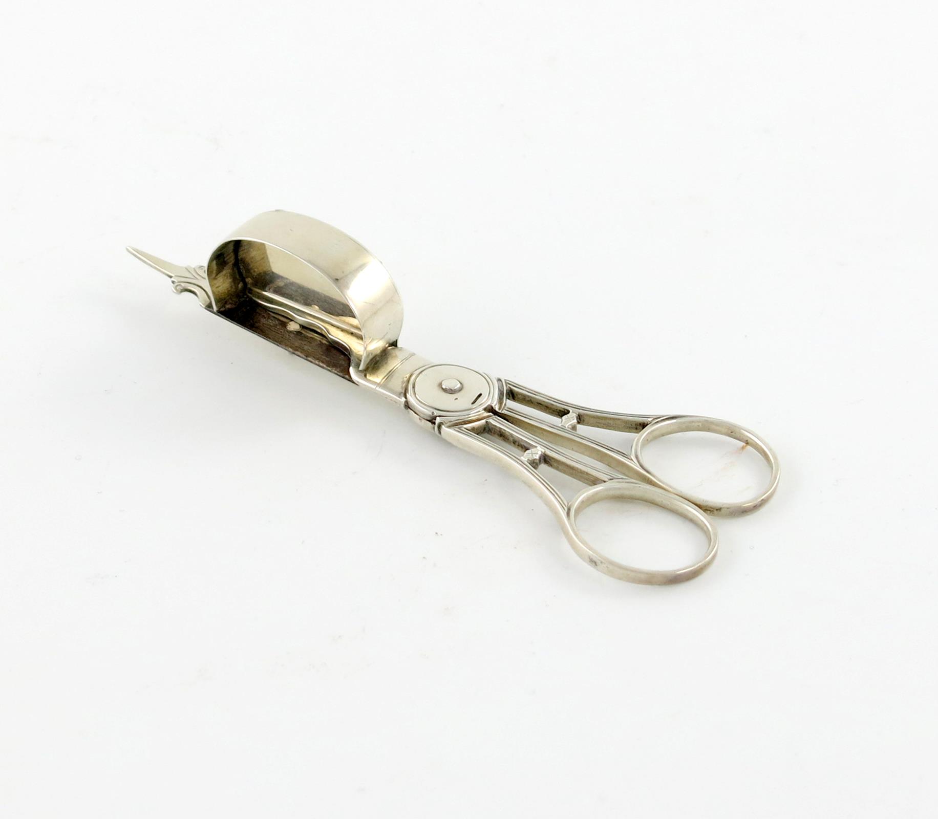 A pair of George III small silver scissor snuffers,