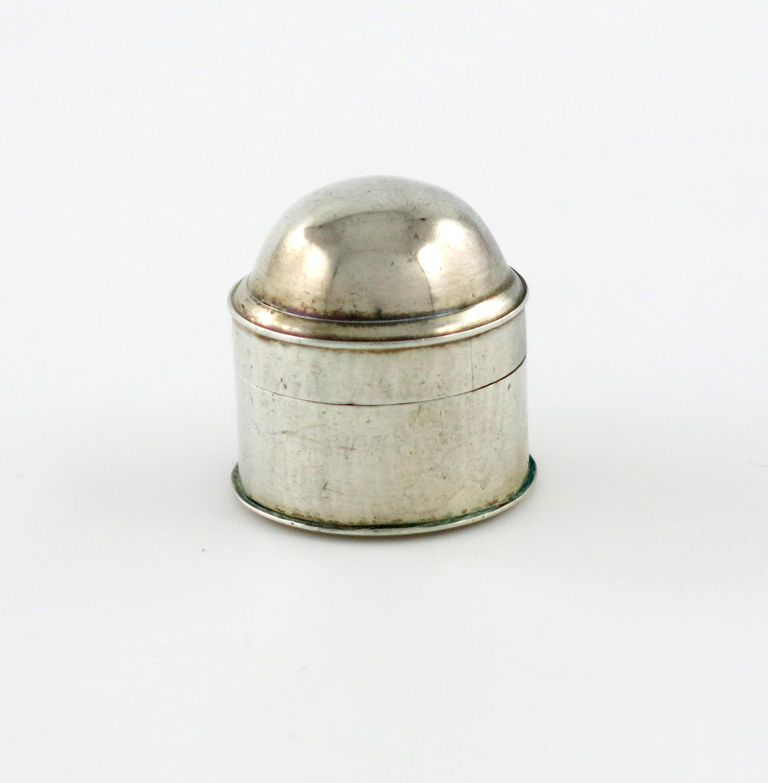 circular form, domed pull-off cover, the interior with a domed pierced silver-gilt grille, diameter 2.2cm, approx. weight 0.3oz.