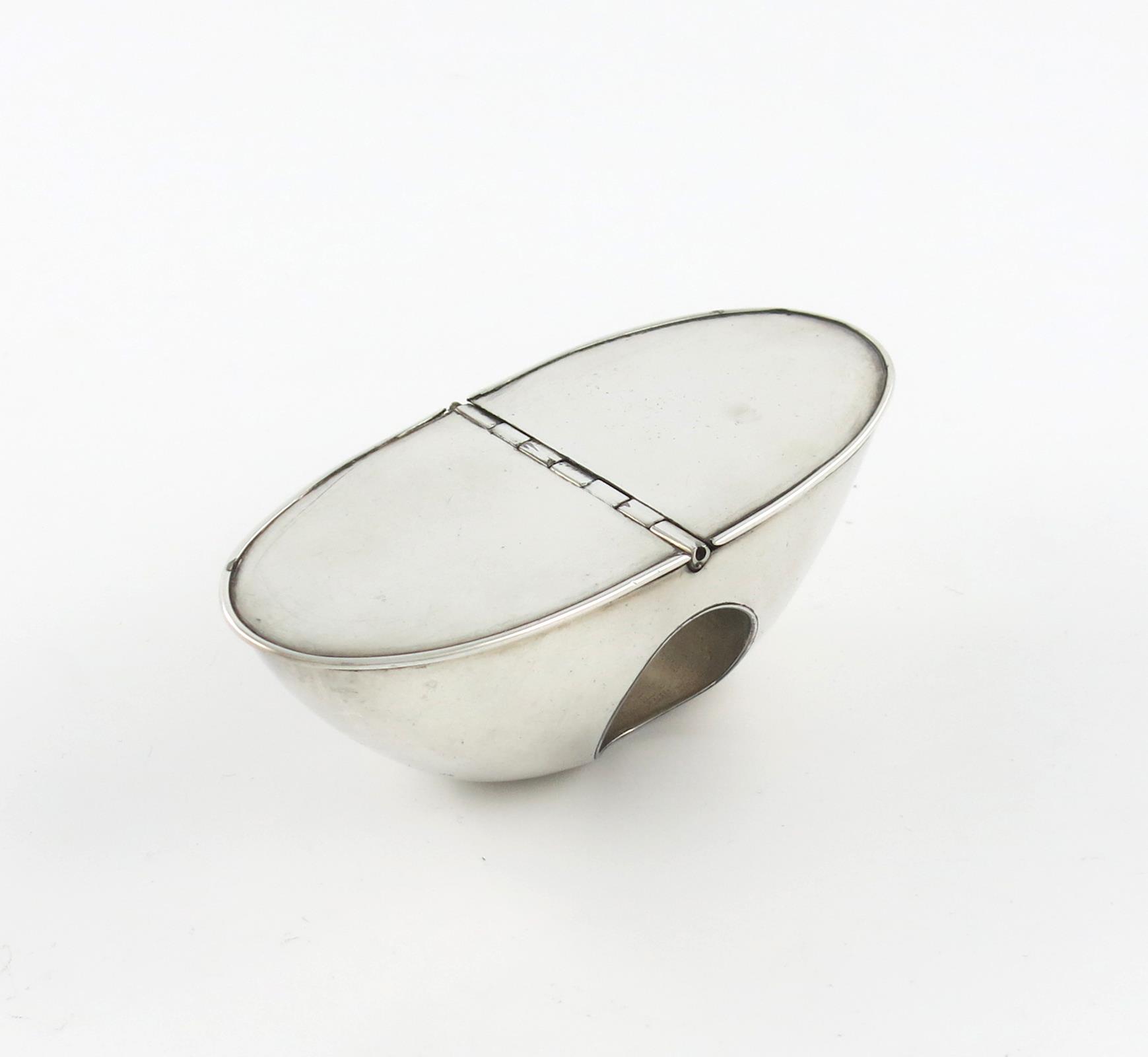 oblong form, with two flush hinged covers, and a plain central finger hole, length 11.2cm.