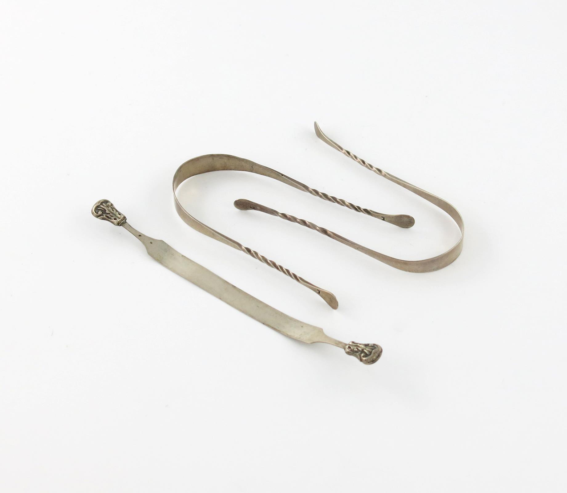comprising: a French example with foliate handles, and two of tong form, twisted stems, approx. weight 0.8oz. (3)