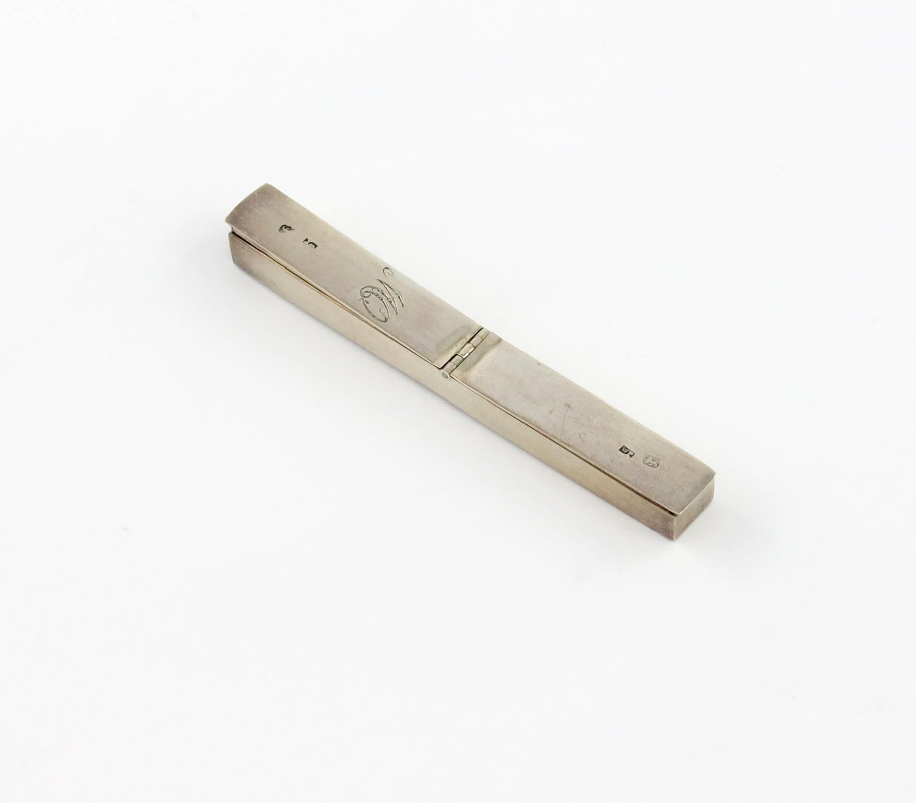 rectangular form, two hinged covers, initialled, length 9.5cm, approx. weight 0.6oz.