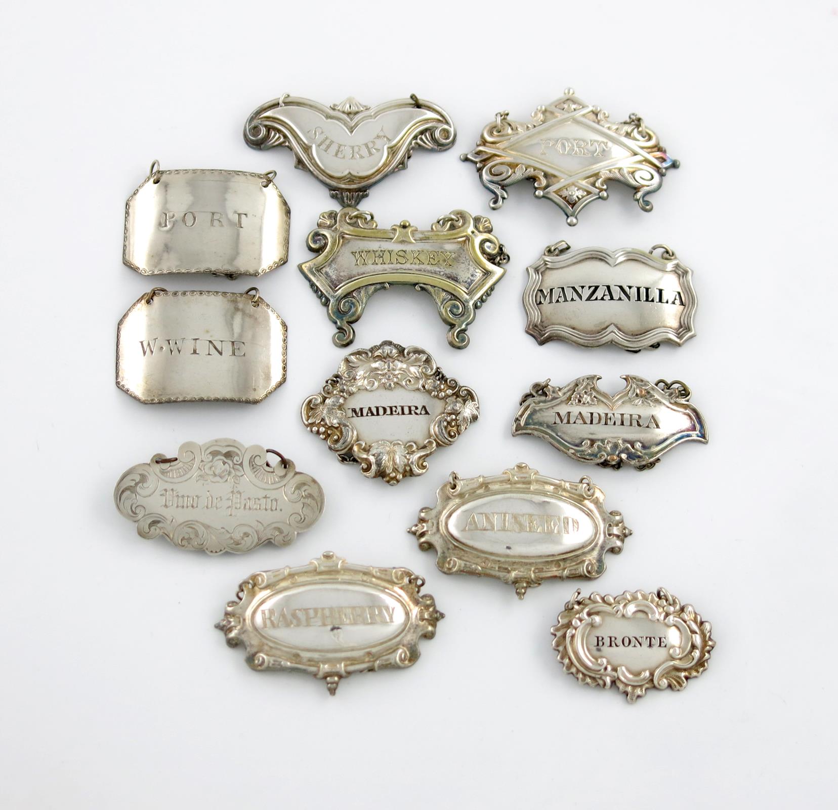 A mixed lot of electroplated wine labels