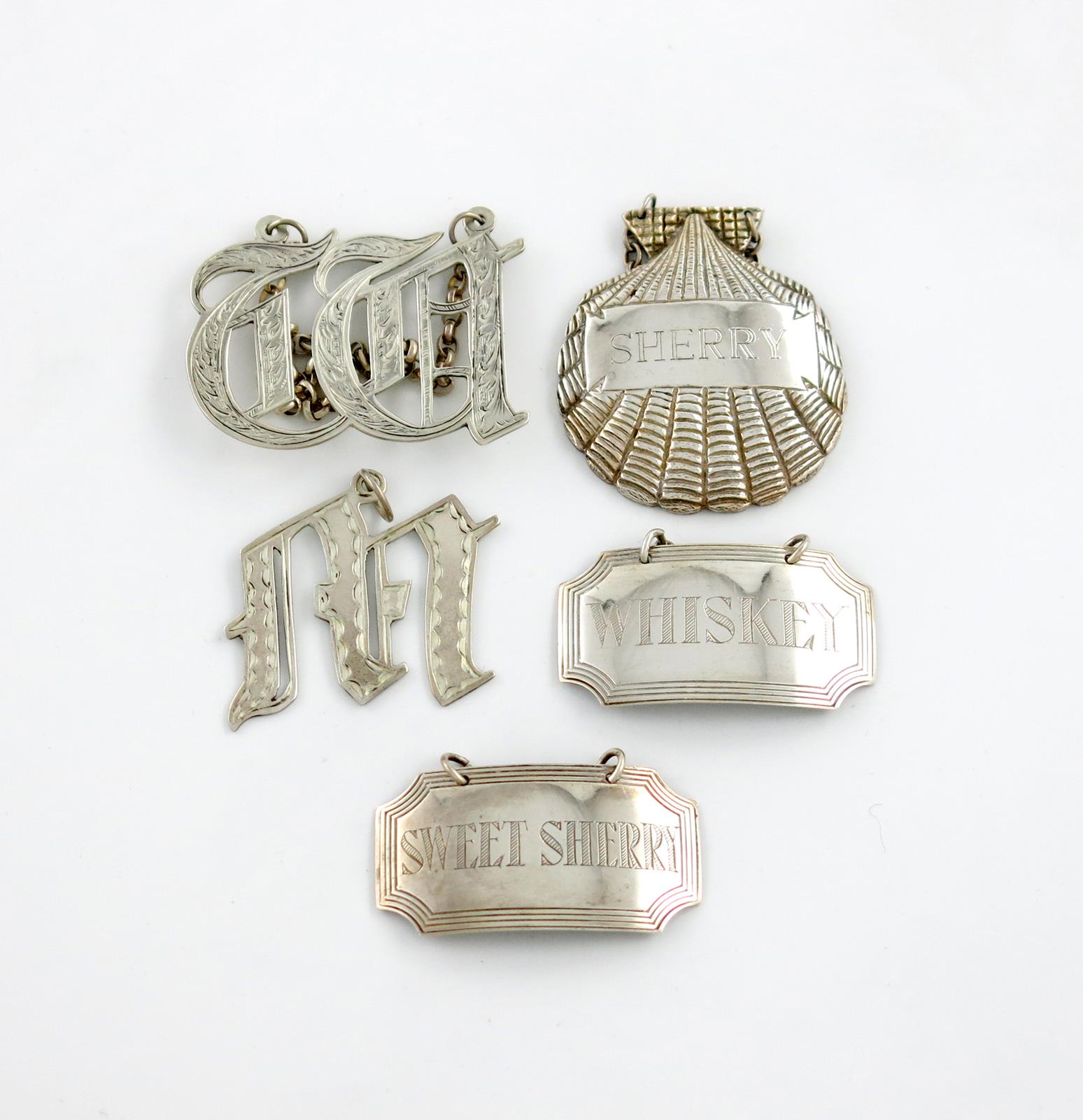A small mixed lot of modern silver wine labels,