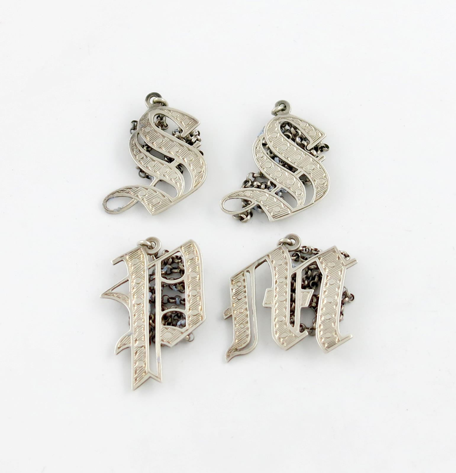engraved decoration, modelled 'M', 'P', and 'S' x2, approx. weight 1.3oz. (4)