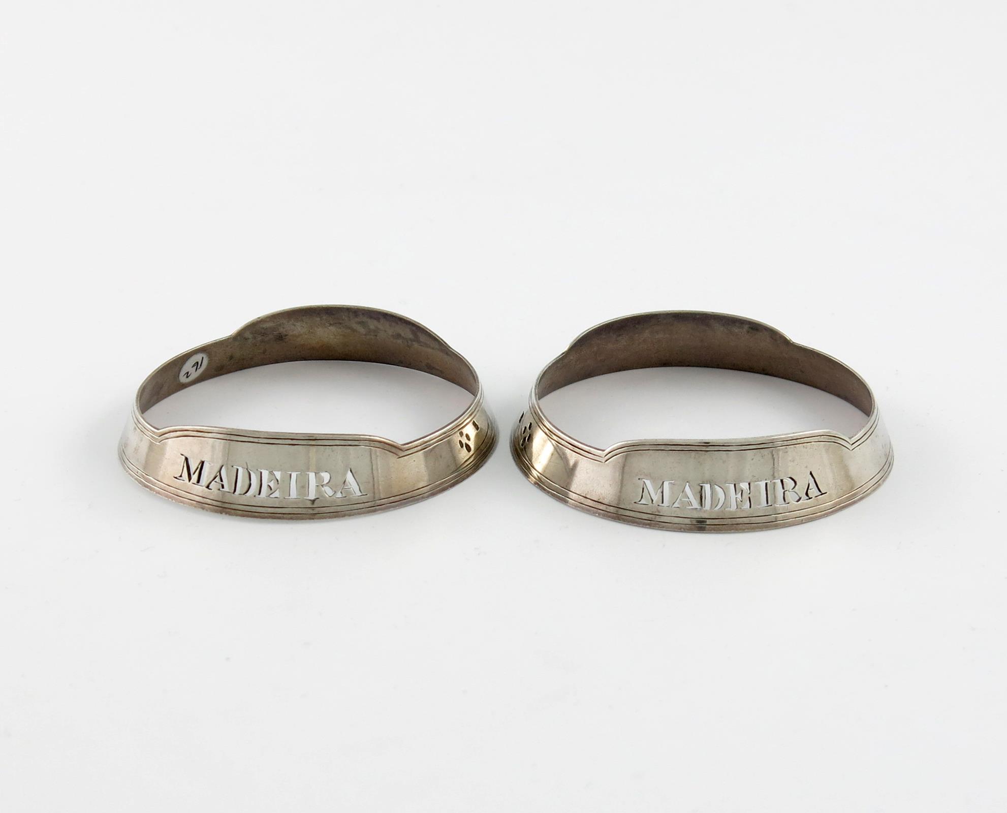 A pair of Victorian silver wine collars