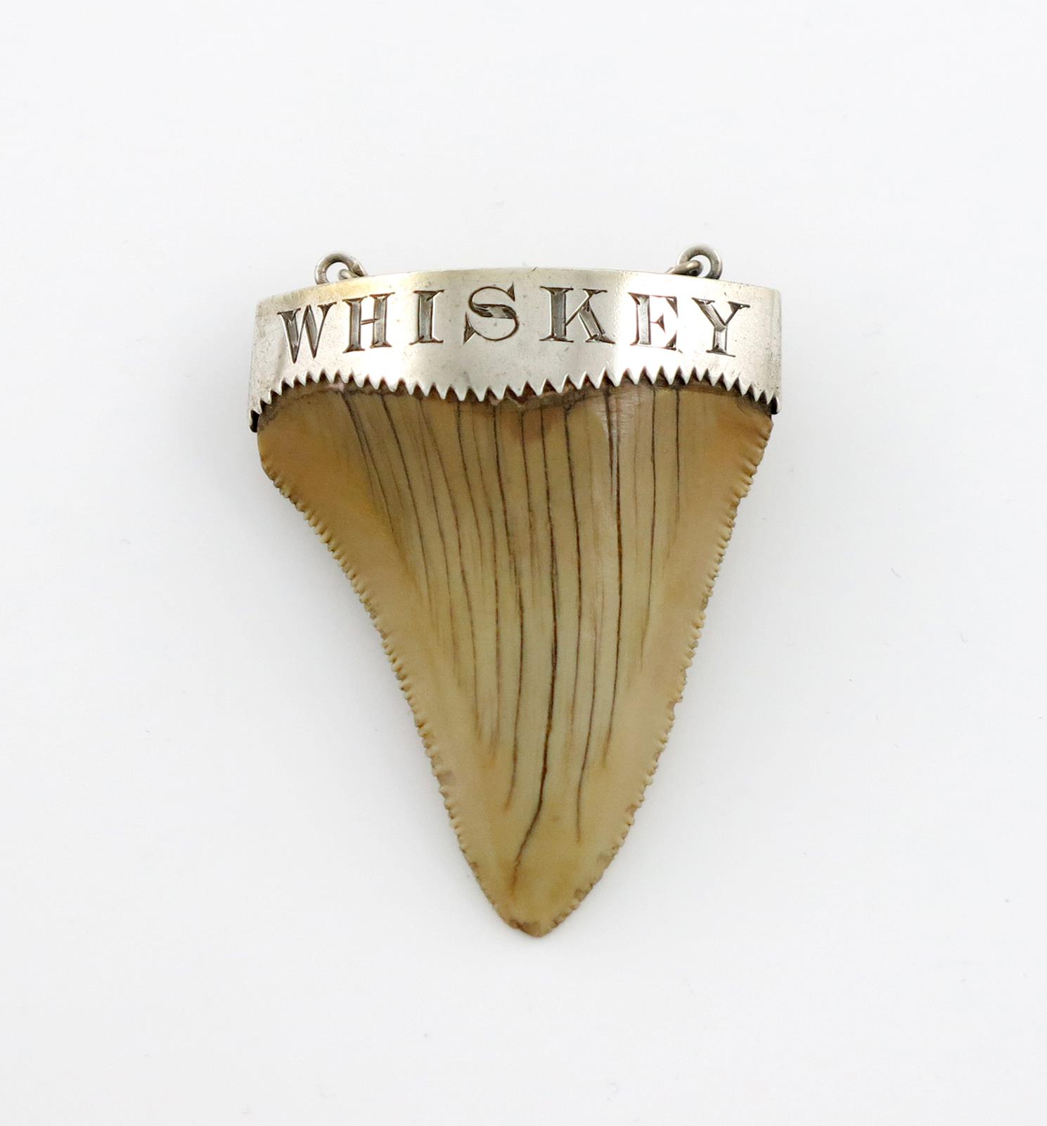 λA silver-mounted shark tooth wine label