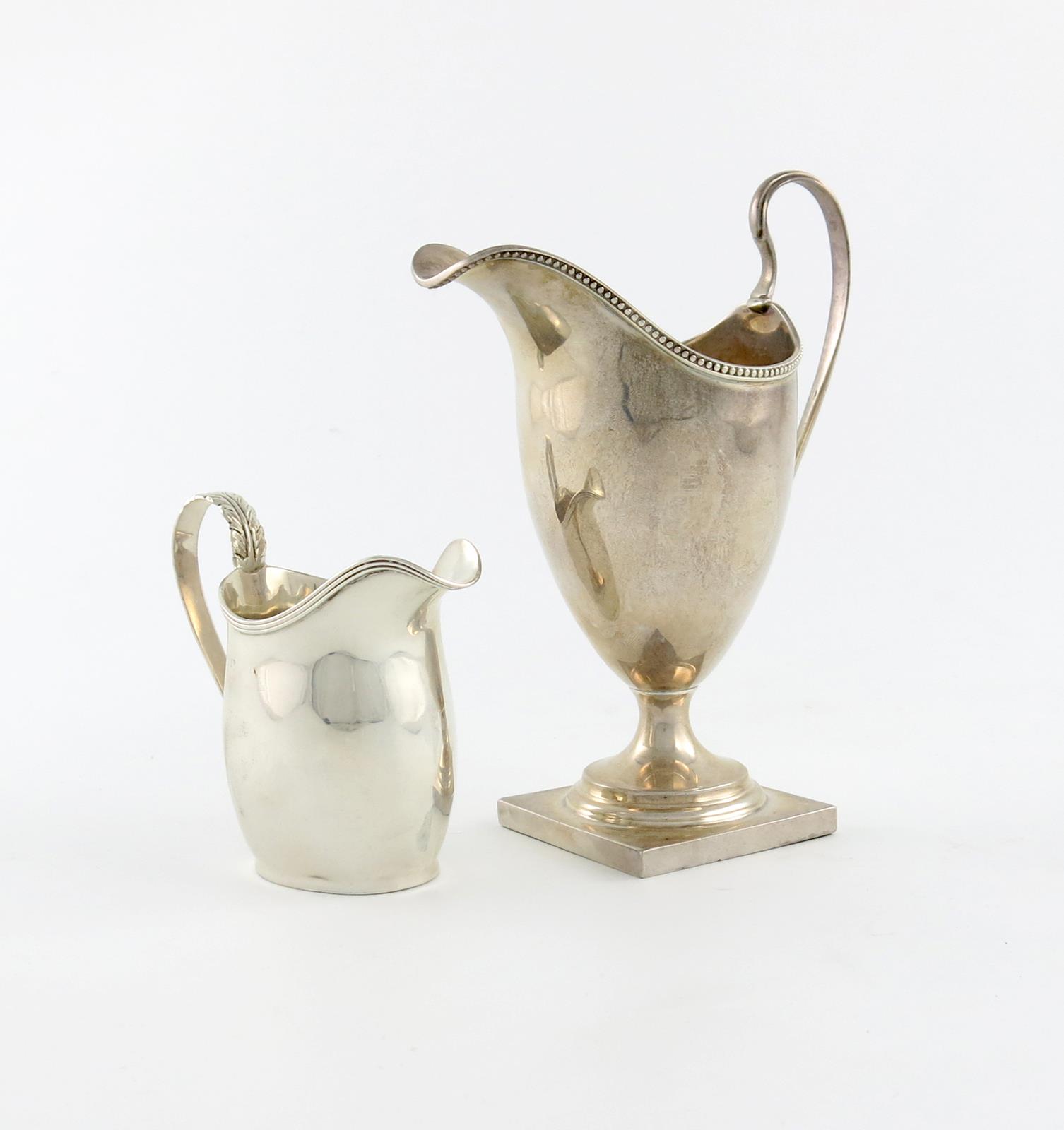 plain helmet form, beaded border, on a square base, plus a silver cream jug of oval form, Chester 1915, approx. weight 5.5oz. (2)