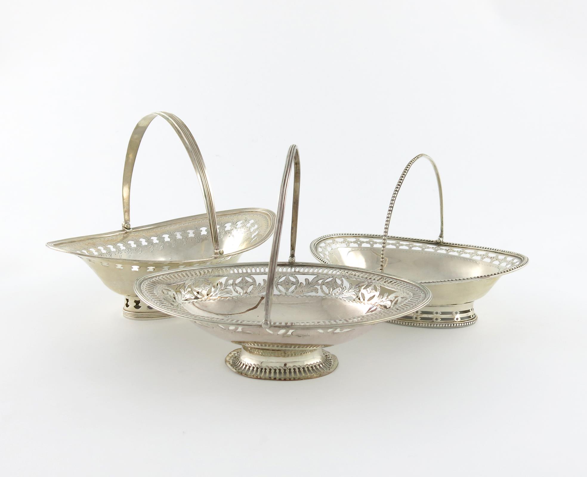 comprising silver items: one by Peter, Ann and William Bateman, London 1800, oval form, pierced and engraved decoration, one London 1784, and one old Sheffield plated basket, approx. weighable 8oz. (3)