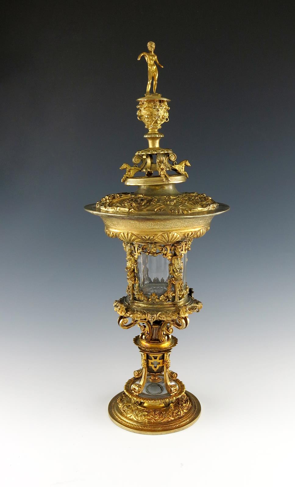 A 19th century Austro-Hungarian gilded electro-type cup and cover,