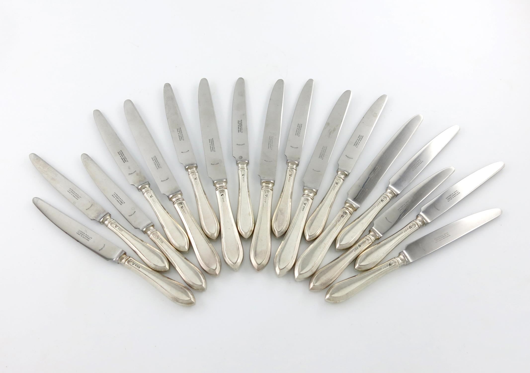 A set of twelve silver-handled Sandringham variant pattern dessert knives and five table knives