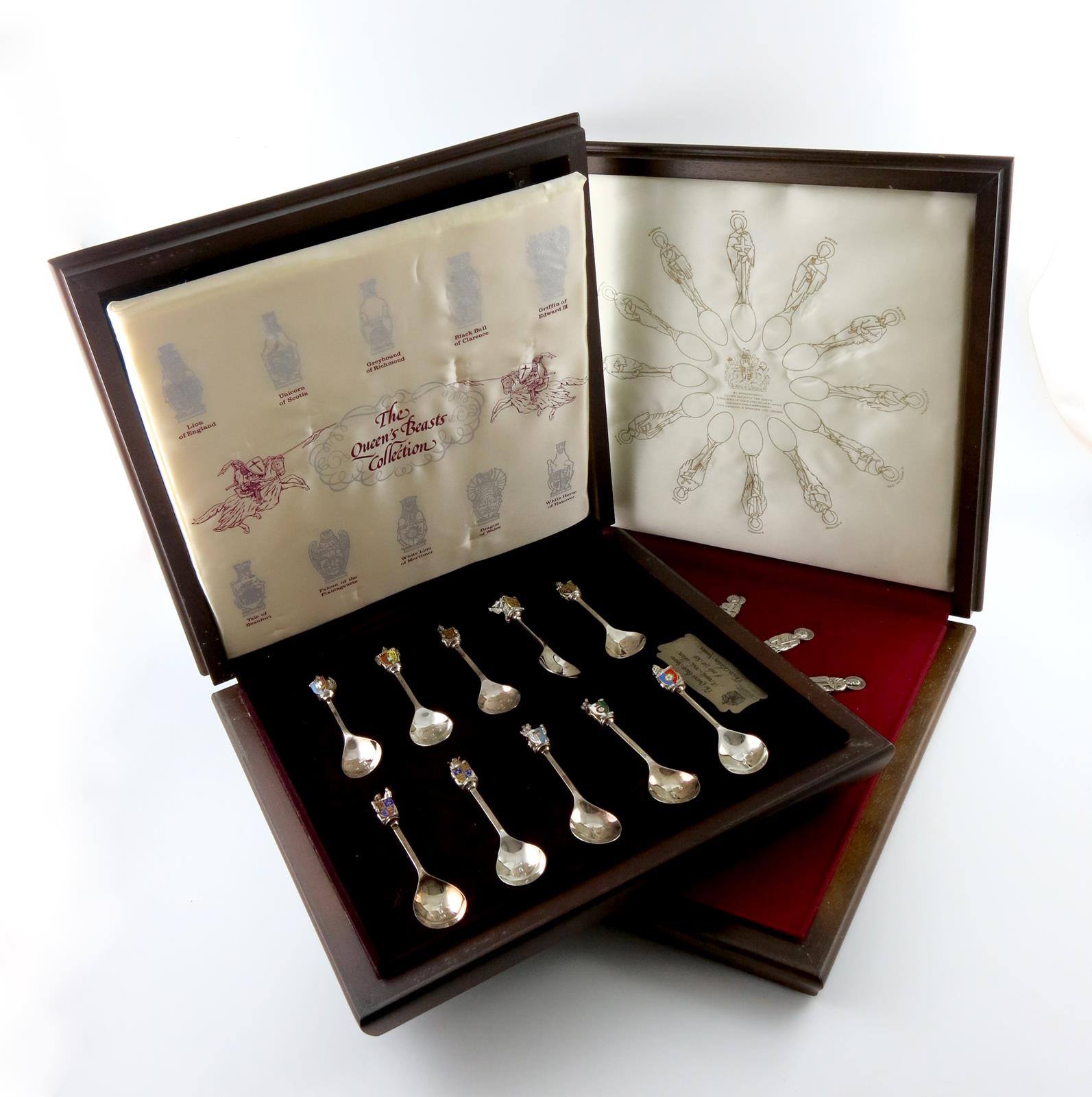 A set of ten modern silver and enamel Queen's Beasts spoons,