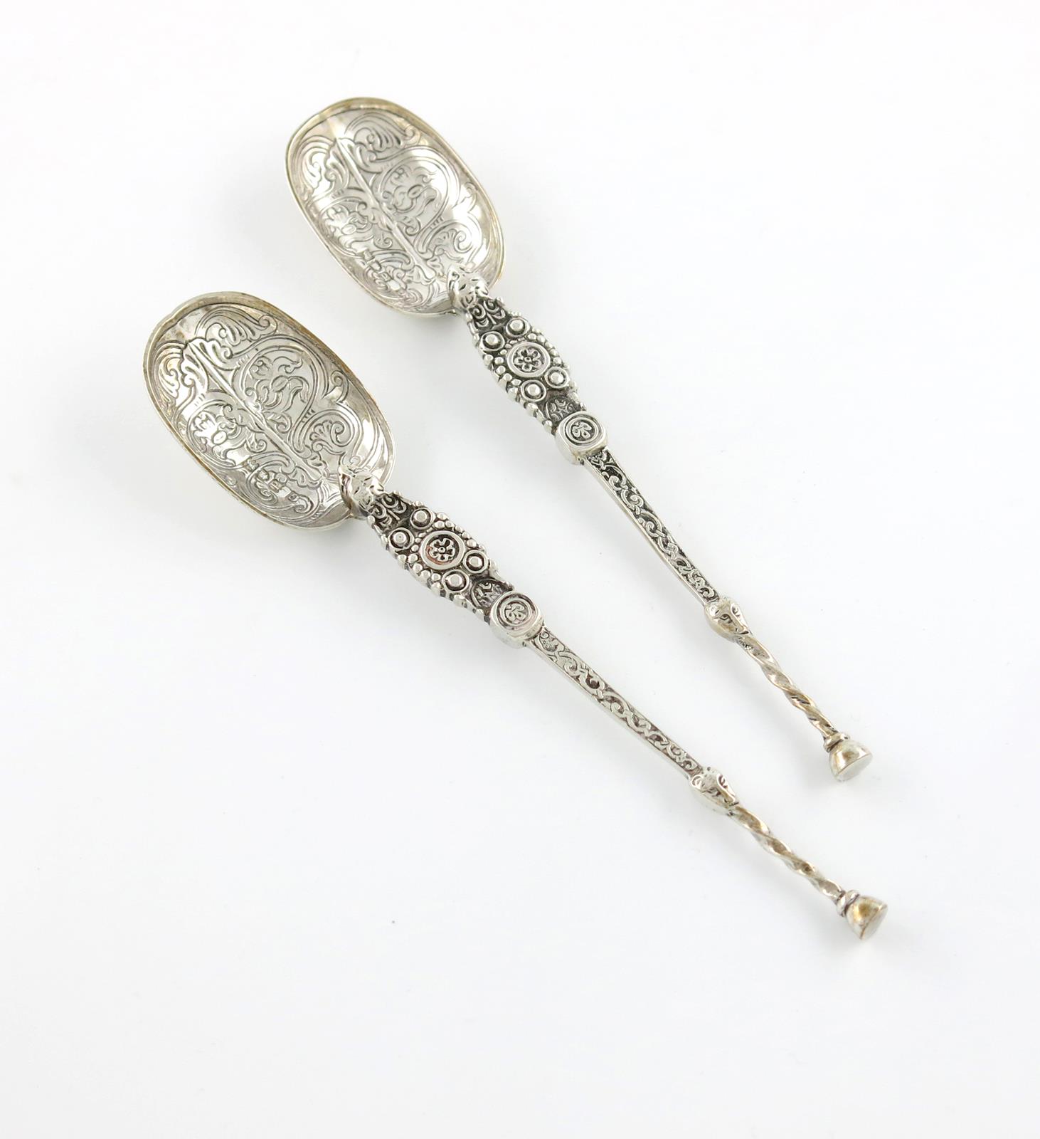 oval bowls, scroll decoration, length 20.3cm, approx. weight 4.2oz. (2)