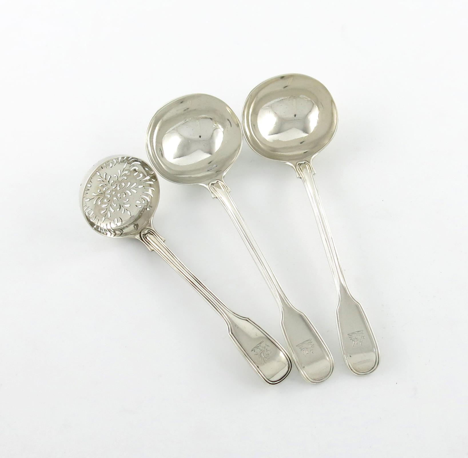 A pair of Victorian silver Fiddle and Thread pattern sauce ladles,