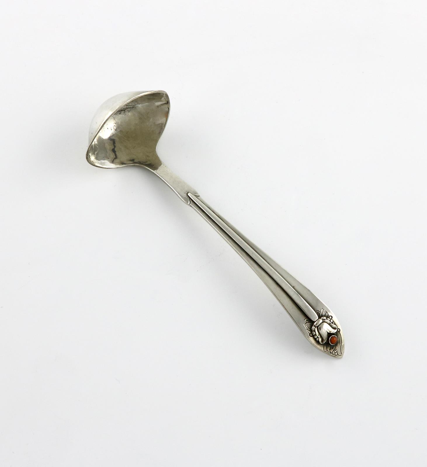 the terminal with applied foliate motif and coral cabochon, double-lipped oval bowl, length 13cm, approx. weight 1oz.