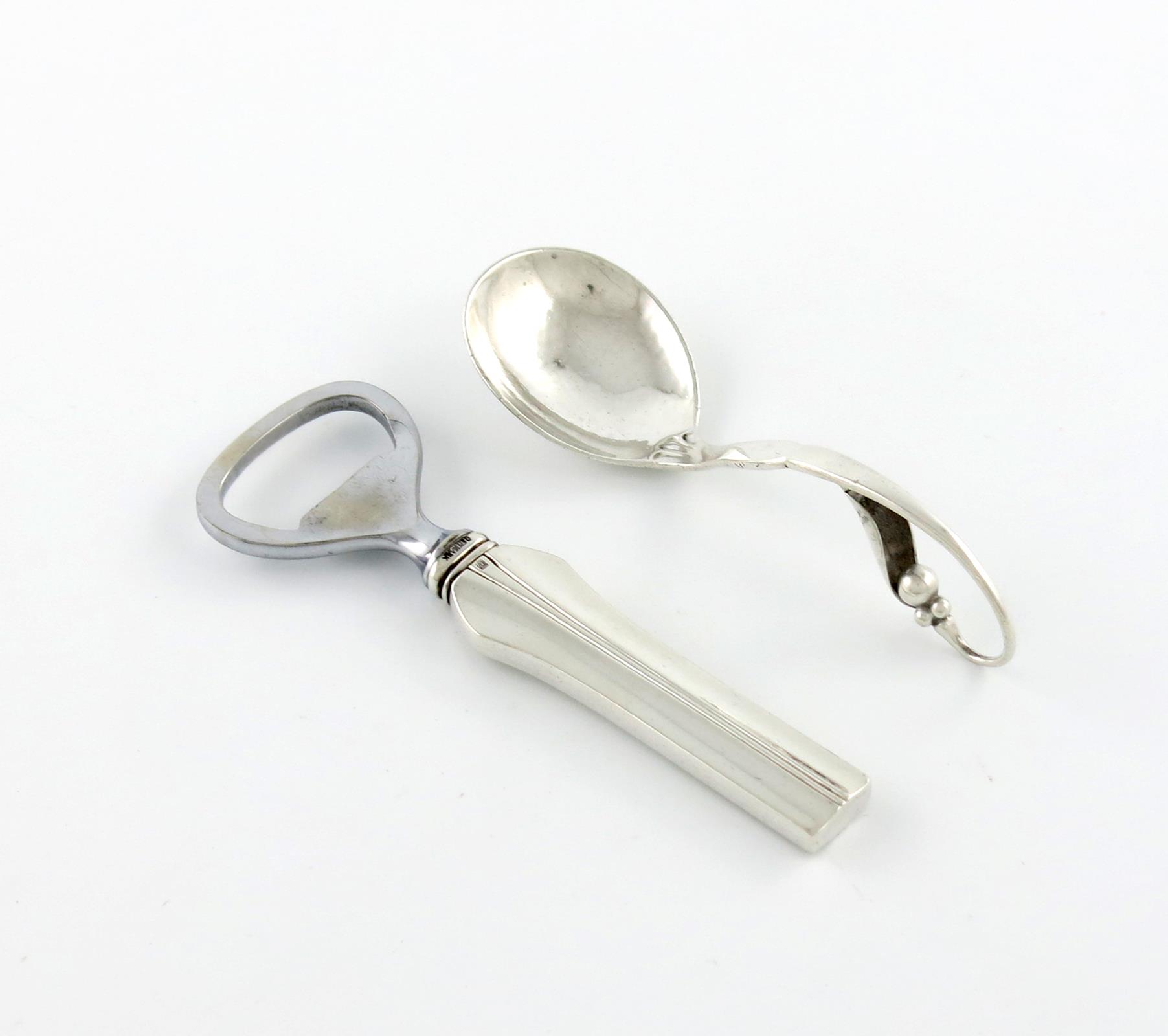 with a bud finial, plus an Elsinore pattern bottle opener, approx. weighable 0.6oz.
