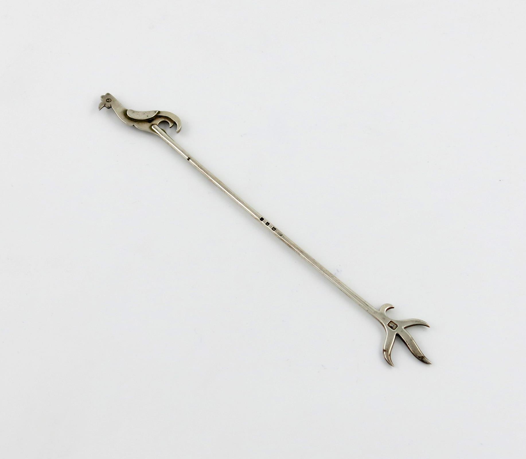 the terminal modelled as a stylised cockerel, the tines modelled as claws, length 22.6cm, approx. weight 1oz.